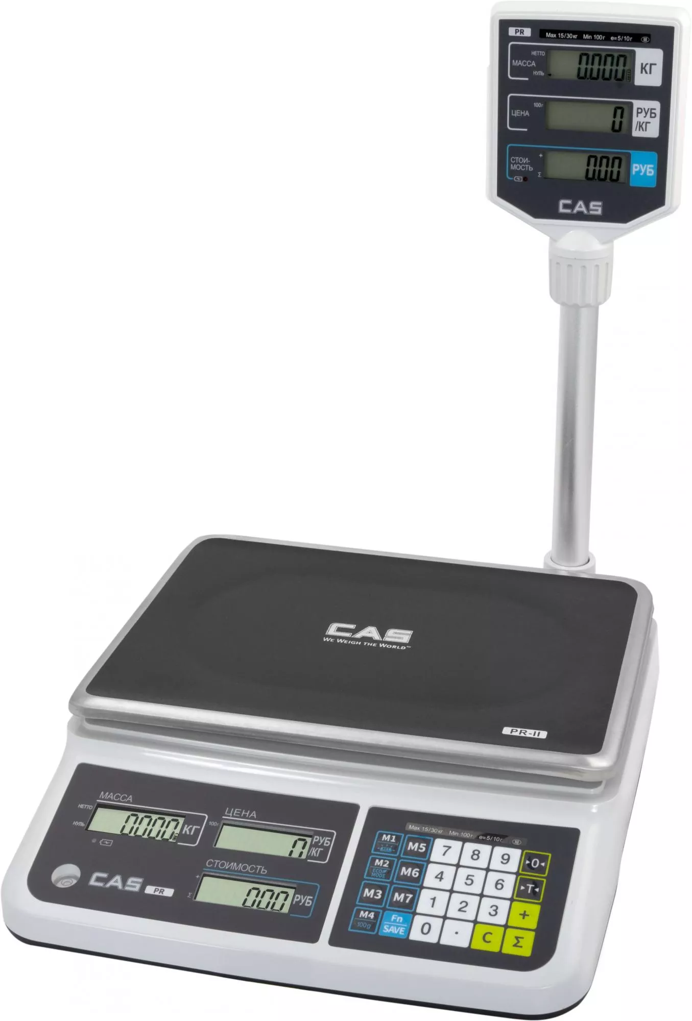 Модель CAS PR-II-Р оснащена 7 клавишами прямого вызова товаров и опционально комплектуются разъёмами RS-232 и USB. А также ЖК-дисплеем с подсветкой, индикацией разрядки аккумуляторной батареи и «плавающей точкой» в 6 разрядах, которая устанавливается с клавиатуры.